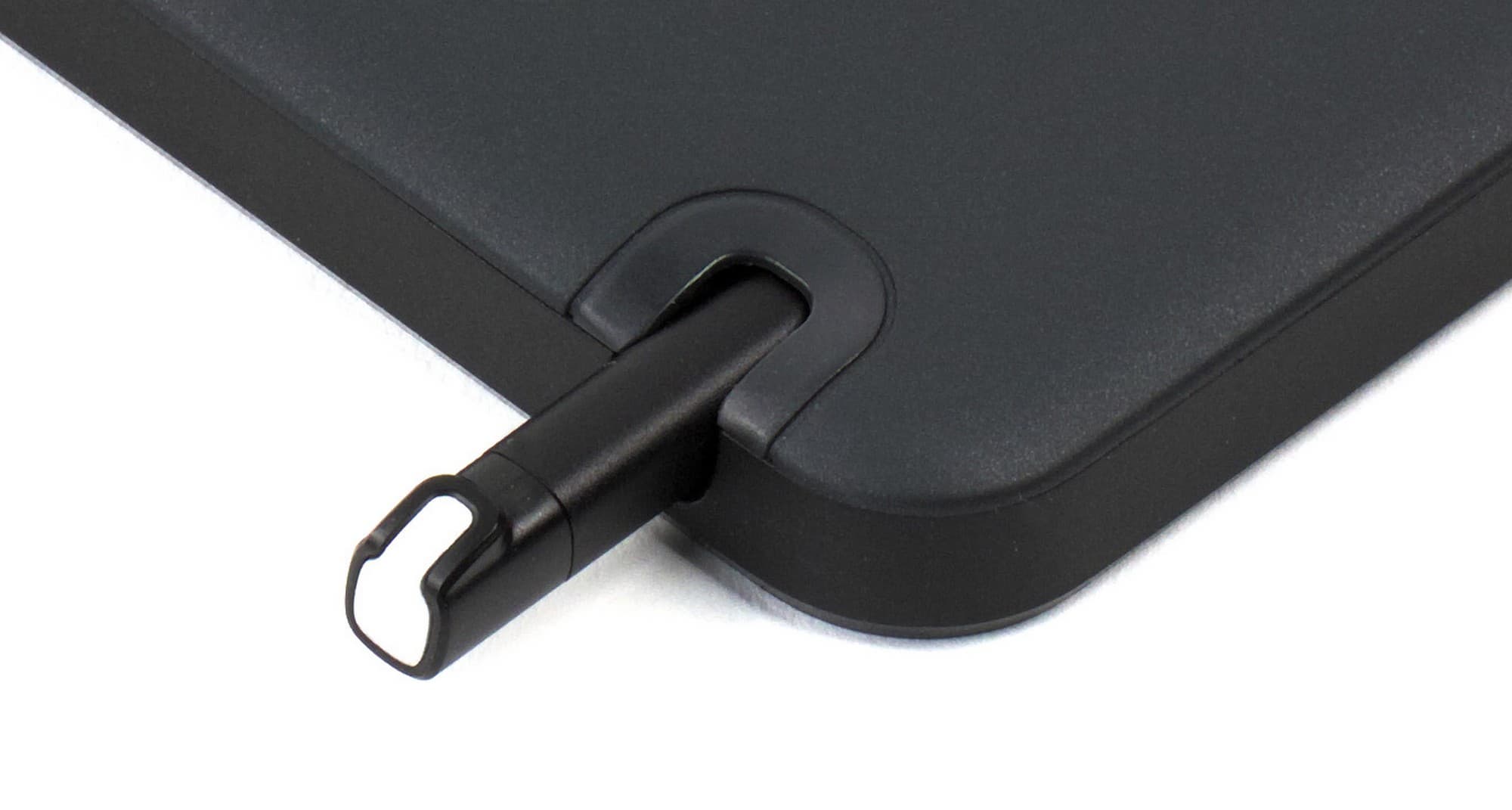 Стилус небольшой, выполнен он почти целиком из металла, за исключением резинового наконечника, которым мы касаемся экрана. В руке стилус лежит достаточно удобно.