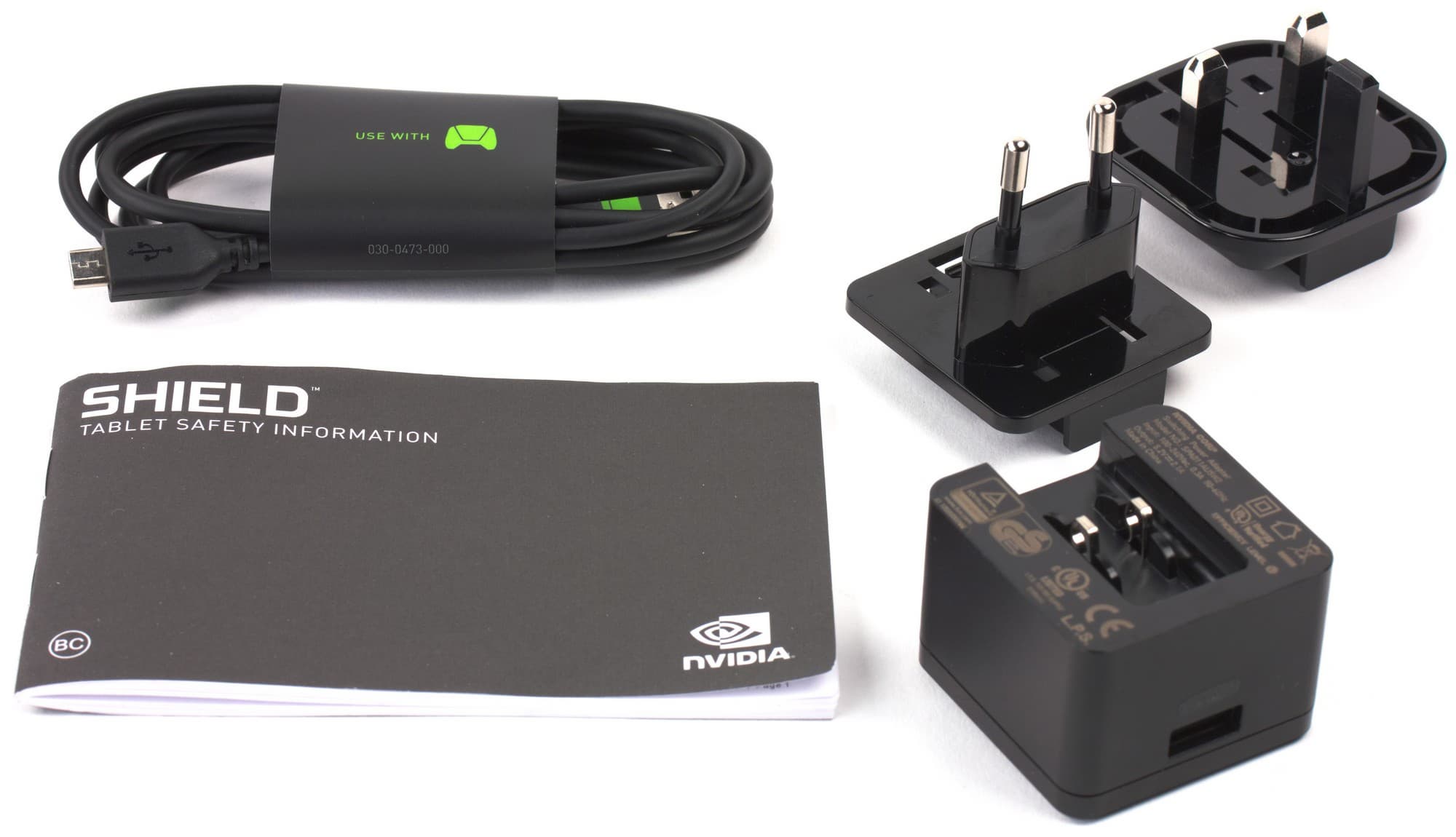 В целом, комплектация Nvidia Shield Tablet — одна из самых богатых и впечатляющих. Да и с эстетической точки зрения упаковка вызывает исключительно приятные эмоции: все выполнено в фирменной черно-салатовой цветовой гамме и выглядит дорого, качественно.