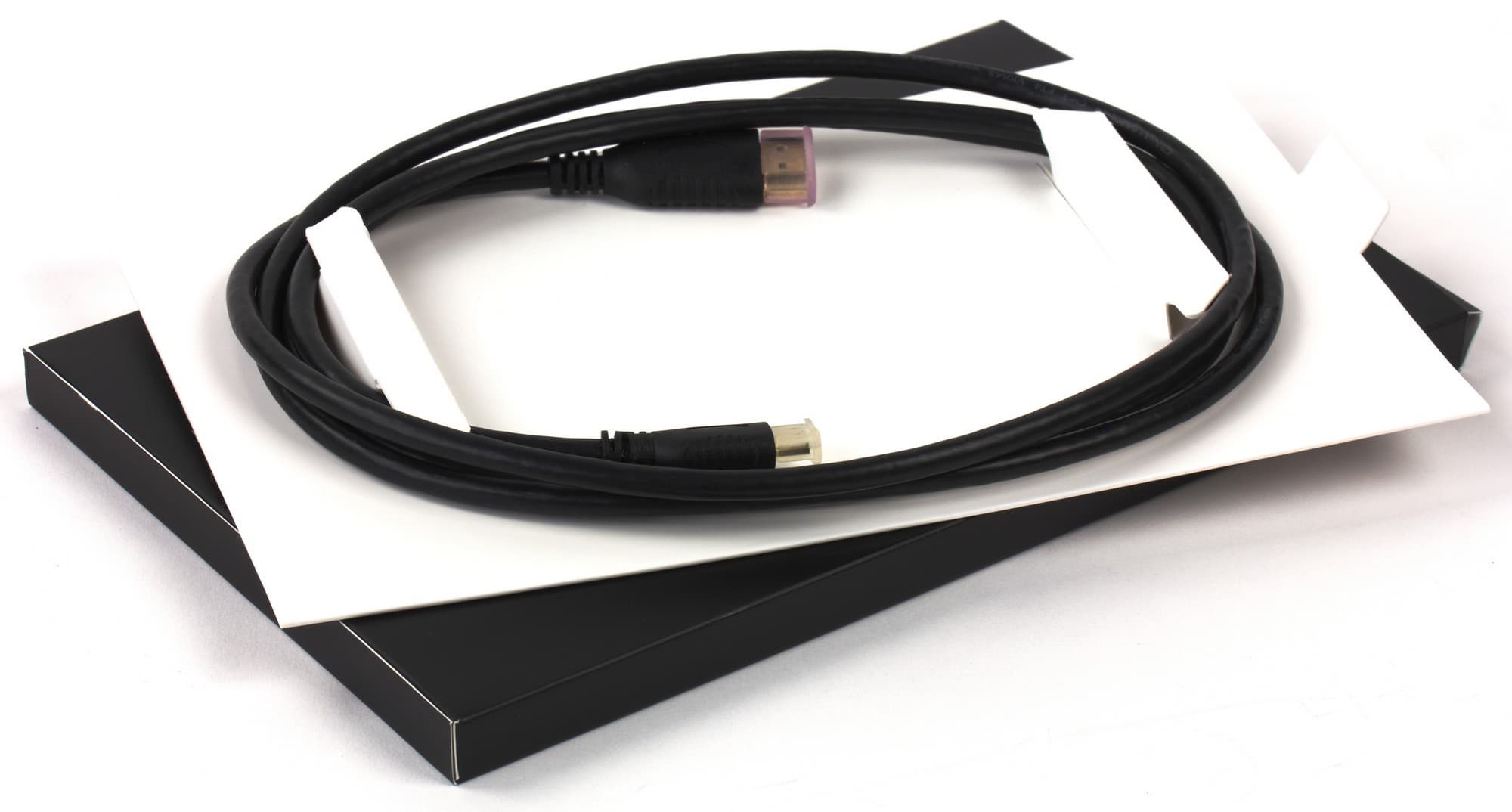 Но и на этом комплектация не заканчивается. Помимо вышеперечисленного, в боксе была обнаружена еще одна коробка — с кабелем Mini-HDMI—HDMI, что очень порадовало, ведь одно из основных применений планшета — подключение его к ТВ.