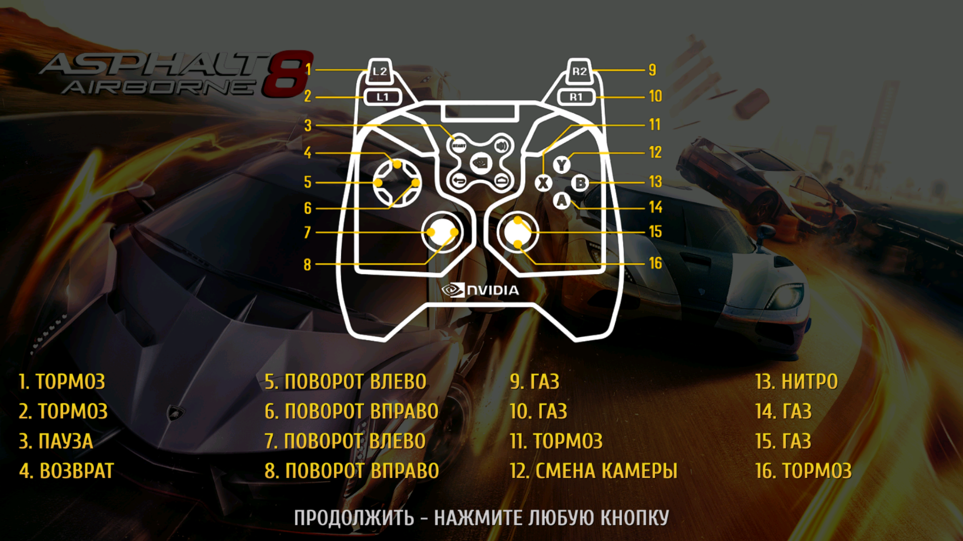 В некоторых играх (например, производства Gameloft) на экран выводится схема, помогающая разобраться, какая кнопка за что отвечает. Но далеко не во всех есть такая красота :) Сразу видно, с какими игровыми студиями Nvidia поработала, а с какими — нет.