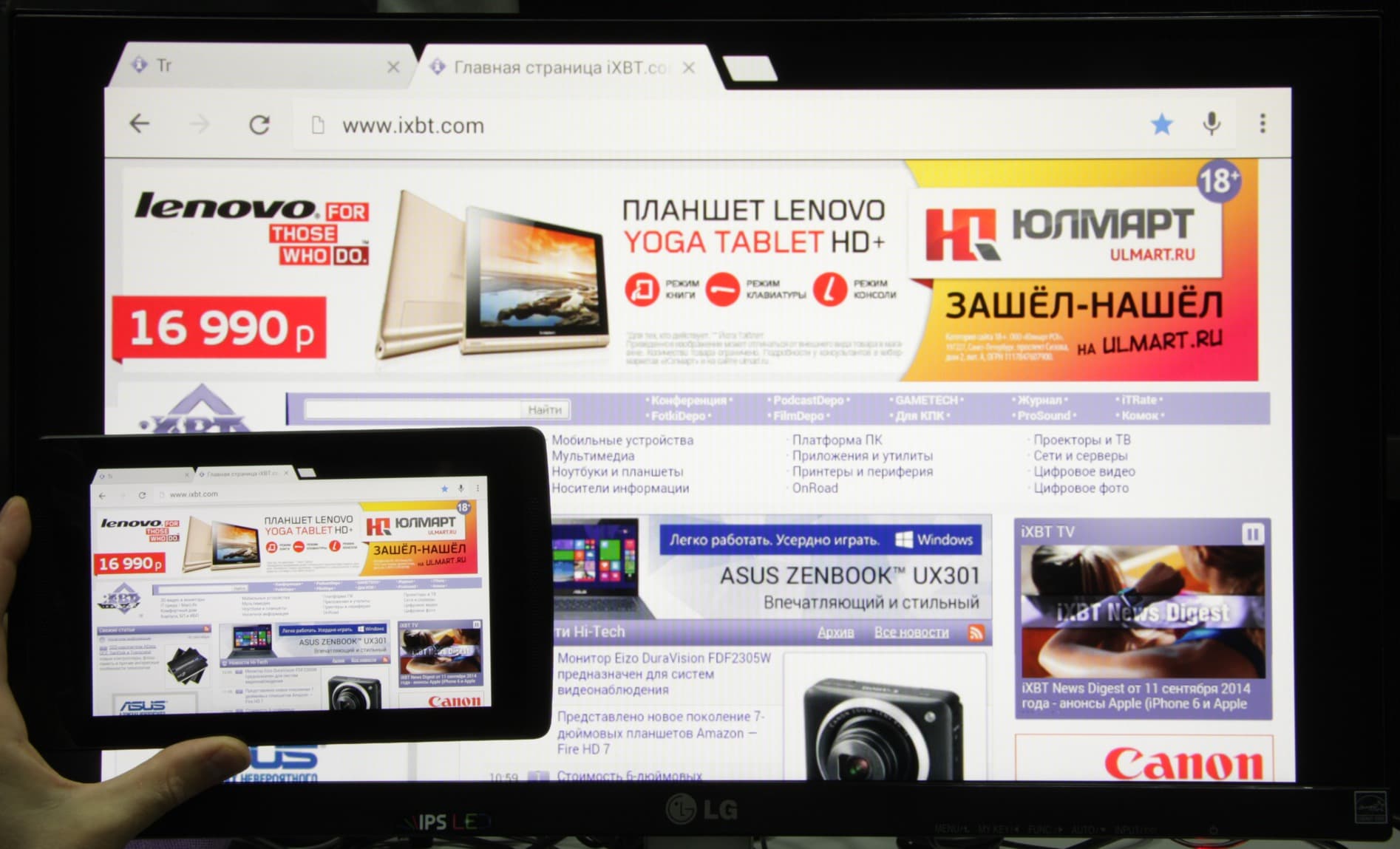 Для тестирования вывода по HDMI мы использовали монитор LG IPS237L