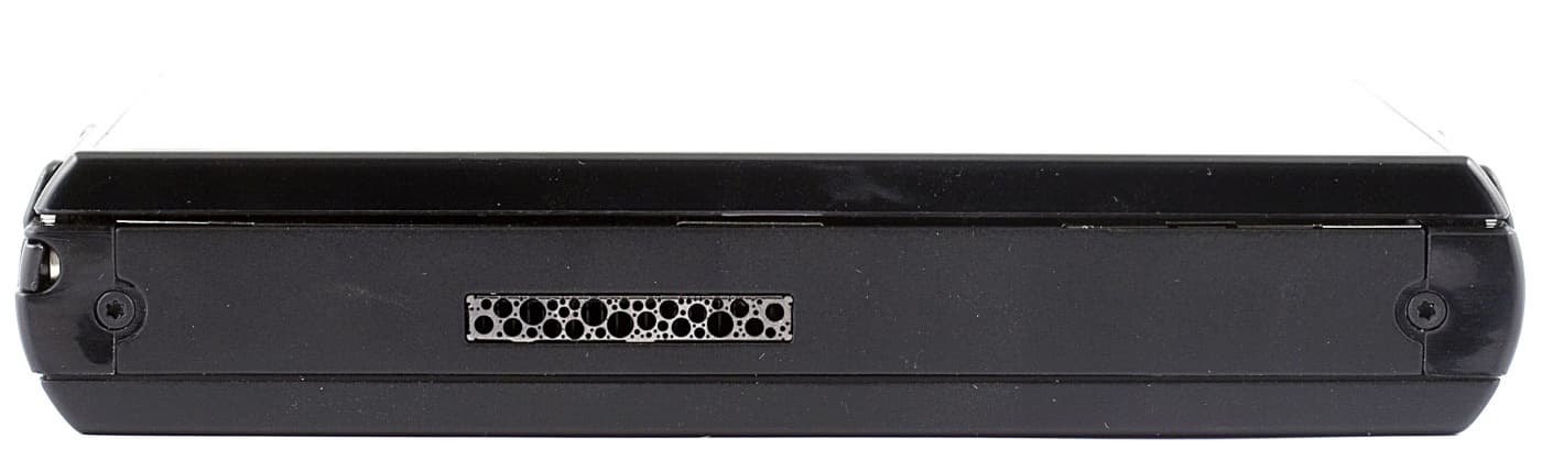 Скользящая часть экрана, дополнительно к механизму, сверху удерживается двумя металлическими «ушами», их видно на фотографиях. Они удерживают крышку, чтобы она не изгибалась вперед-назад относительно корпуса. Если не прикладывать чрезмерных усилий (а мы не прикладывали), то двигающаяся часть держится на корпусе очень крепко, не думаю, что ее так просто отломать. Раздвижной механизм оснащен доводчиком, если толкнуть крышку, сначала она упирается, но потом идет очень легко и сама дощелкивается до конца. Так же и при обратном складывании. Доводчик делает использование слайдера очень удобным и приятным.