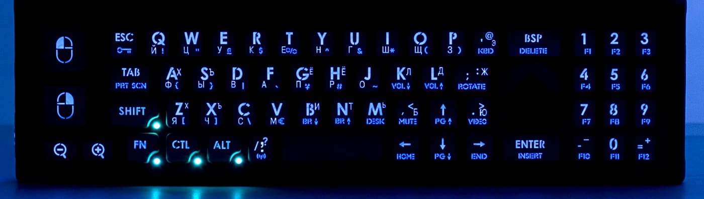 Отдельно стоит рассказать о раскладке. Если пользоваться английским языком, то все шикарно. С русским проблема в том, что на клавиатуру надо наносить еще и русскую раскладку. Сделать это сложно: во-первых, сами клавиши маленькие, во-вторых, они даже в варианте только с латинской раскладкой уже достаточно сильно загружены символами. В общем, авторы справились русские буквы есть на всех клавишах и достаточно читаемы. Основная проблема на некоторых клавишах русские буквы сделаны в левом нижнем углу, а на некоторых в правом верхнем. Поэтому искать их неудобно. Правда, я через неделю использования практически привык к раскладке и перестал ориентироваться на расположение букв на клавишах. Так что, думаю, после привыкания этот недостаток станет незначительным.
