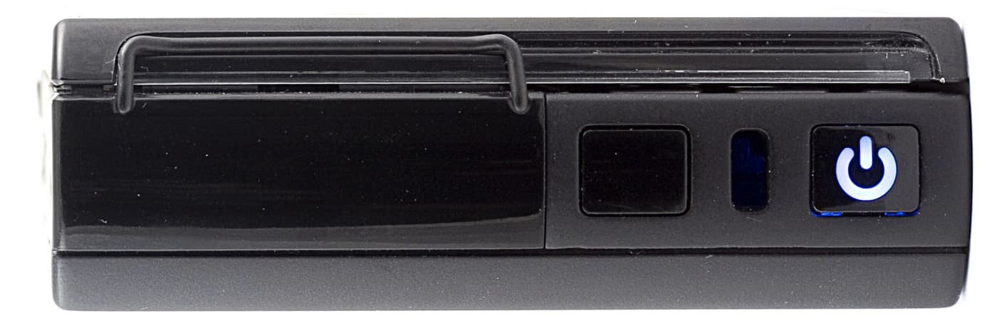 Клавиша включения находится на левом торце. Она утоплена в корпус и нажимается с ощутимым усилием. Думаю, если устройство болтается в кармане, случайных нажатий быть не должно.