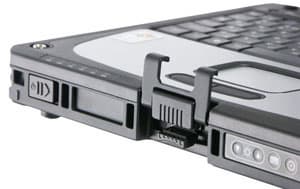 C точки зрения удобства использования, как и в модели CF-Y2, замечания вызывает расположение USB портов их здесь тоже два, и расположение за разъемами RJ-45 и RJ-11 нельзя назвать удачным. Если к ноутбуку подключен сетевой или модемный кабель, то подключать USB устройства становится просто неудобно. С другой стороны, опять таки характерно для Panasonic, расположение портов и конструкция крышек позволяет пользоваться даже крупногабаритными USB устройствами без переходников.