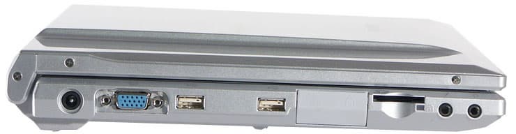Замечания вызывает расположение USB портов их всего два, и расположение за разъемами RJ-45 и RJ-11 нельзя назвать удачным. Если к ноутбуку подключен сетевой или модемный кабель, то подключать USB устройства становится просто неудобно. Зато в случае, если кабели к ноутбуку не подключены, расположение портов позволяет отказаться от переходников при подключении даже крупногабаритных USB устройств.