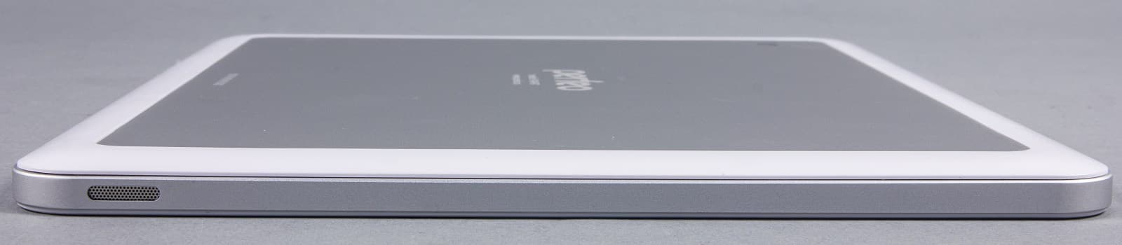 C другой стороны боковой грани находится маленькое отверстие динамика, симметрично продублированное напротив. Расположение динамиков нельзя назвать удобным: в альбомной ориентации они легко заслоняются ладонями. Да и без этого звучат довольно негромко.