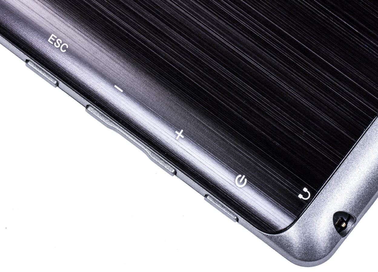 Механические кнопки находятся на левой грани планшета. Стандартный набор расширен клавишей возврата в предыдущее меню. Качелька громкости растянута, что с точки зрения эргономичности довольно спорно. Все кнопки имеют короткий и четкий ход.