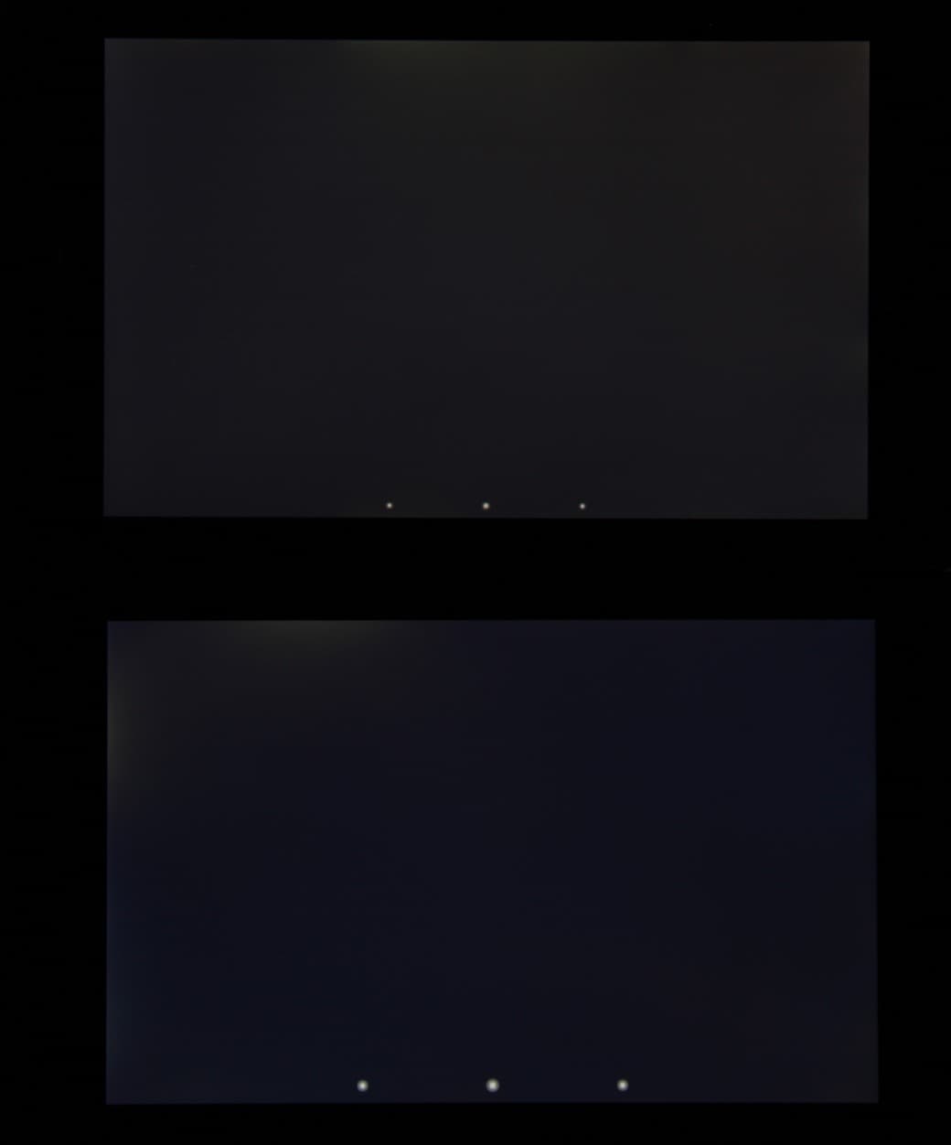 При перпендикулярном взгляде равномерность черного поля хорошая, но не идеальная, так как по краю есть несколько участков с повышенной яркостью черного:
