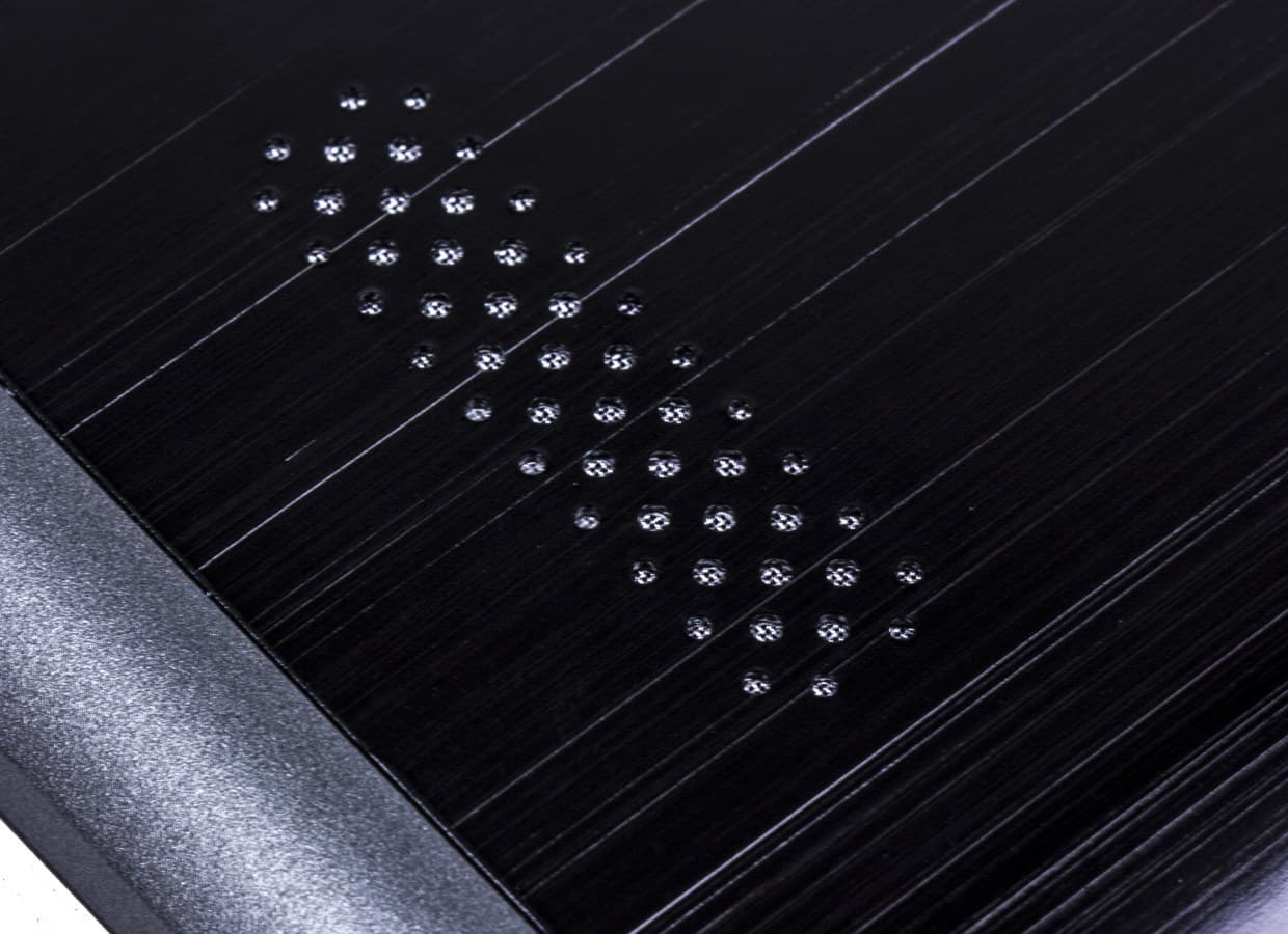 Большая часть тыловой поверхности прикрыта текстурированной алюминиевой панелью, довольно скользкой и легко собирающей отпечатки пальцев. На ней подписаны все разъемы.
