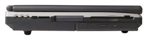 Весьма насыщенный бок. В самом конце расположены 3 аудиоразъема, далее идет окошко инфракрасного порта, затем картовод Memory Stick (я бы с большим удовольствием увидел Compactflash, мне кажется, этот формат больше распространен). Дальше идет разъем PC-CARD и совсем справа дисковод для флоппи-дисков. А под всем этим великолепием — комбо-привод от компании QSI.