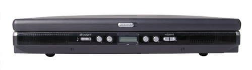 Слева и справа расположены решетки динамиков. А посередине, в симпатичной стеклянной вставке, находятся кнопки, управляющие аудиоплеером, который может работать и при выключенном компьютере. Ползунковый переключатель слева служит для включения, еще есть четыре кнопки воспроизведение, пауза, вперед, назад. А справа расположены две кнопки регулировки громкости, которые функционируют и тогда, когда ноутбук находится в стандартном рабочем режиме.