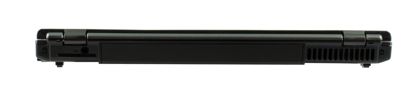 На задней панели расположен только разъем питания. Всю середину корпуса занимает батарея, а справа от нее расположена вентиляционная решетка.