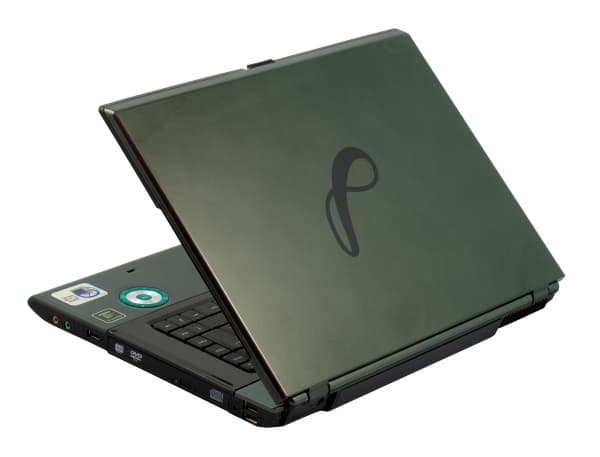 Дизайн корпуса чем-то (только не спрашивайте, откуда возникла такая ассоциация) напоминает по дизайну футуристические космические корабли в фильмах восьмидесятых годов. Сам ноутбук сурово прямоугольный, лишь чуть-чуть скруглены углы. Зато передняя панель предстает во всем великолепии. Она скошена вперед, и между двумя крашеными в хамелеон деталями проходит линия простой черной пластмассы, на которой находится ползунок замка крышки. Нижняя крышка ноутбука плоская и выполнена из обычной черной матовой пластмассы, выглядящей, прямо скажем, простовато. На столе ноутбук стоит на достаточно высоких ножках, видимо, чтобы лучше охлаждалось дно. Кстати, из-за этого его неудобно держать на коленях.