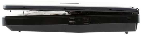 Наконец, на правой стороне корпуса расположены: выход на внешний монитор, выход S-video, разъем для антенны ТВ-тюнера (они прикрыты резиновыми крышечками), модемный и сетевой порты, порт FireWire, слот Expresscard и универсальный картовод, а под ними — комбинированный привод, поддерживающий все вплоть до Blu-ray