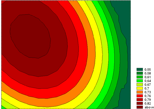 Поверхность, построенная по значениям яркости черного поля. Изолинии через 0,02 кд/м2