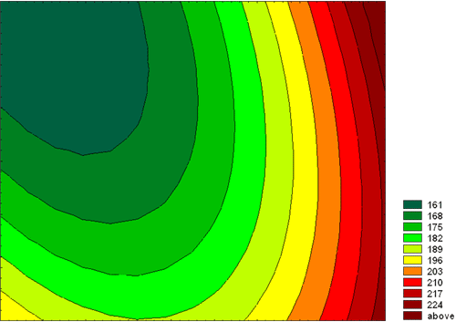 Поверхность, построенная по значениям контрастности. Изолинии через 7 единиц