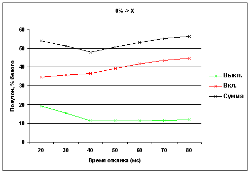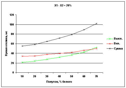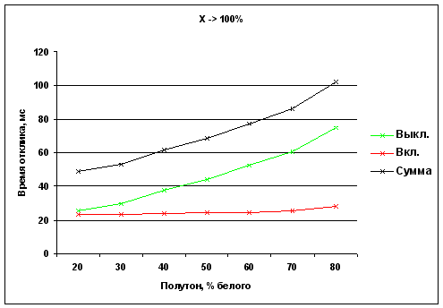 Времена отклика при переходе между полутонами в окрестности X, отстоящими от X на 10%