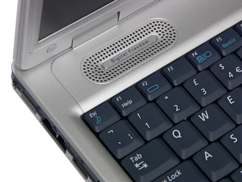 И при открытой крышке сразу можно сказать, что это Samsung хотя бы по вентиляционной решетке слева над клавиатурой со слоганом «Digital Freedom».