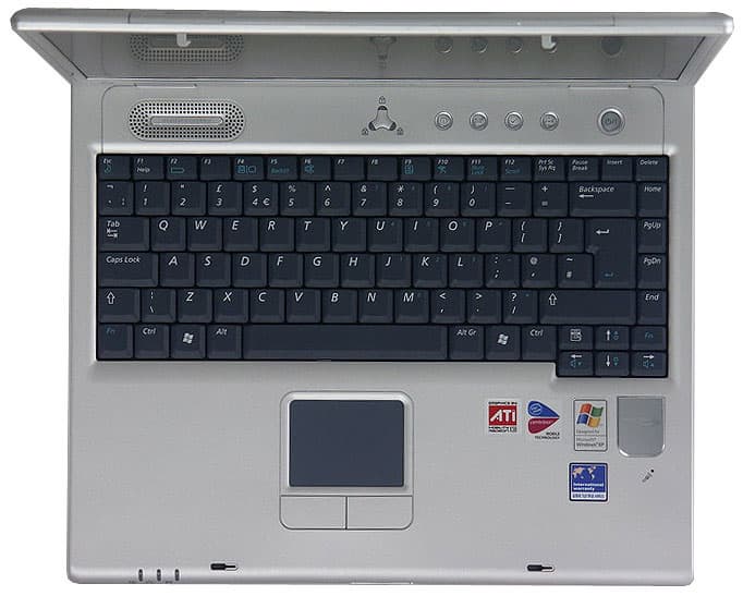 Раскладку клавиатуры можно было бы назвать идеальной, если бы не короткий левый Shift и «лишняя» кнопка вызова контекстного меню в курсорном блоке. Из управляющих комбинаций стоит отметить вызов информации об источнике питания и уровне зарядки батарей (Fn+F2), включения «тихого» режима (Fn+F10) и отключения подсветки матрицы (Fn+F5). В «тихом» режиме ноутбук работает в режиме минимального энергопотребления (минимальная частота процессора) и с минимальной скоростью вращения вентилятора. Правда, в руководстве пользователя есть предупреждение о том, что длительное использование этого режима может привести к перегреву системы. Для ноутбуков с процессором Celeron M режим, естественно, недоступен, да и практическая его ценность, как мне кажется, сомнительна, так же, как и функции отключения подсветки — энергия при этом, конечно, экономится, но разглядеть что-либо на экране при выключенной подсветке практически невозможно.