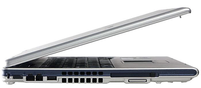 На заднем торце под откидной крышкой расположены разъемы, которые не могут испортить внешний вид модели — параллельный и последовательный порты и выход на внешний монитор. К тому же велика вероятность, что воспользоваться ими вам так и не придется. Слева от крышки — 6ти-контактный разъем IEEE1394 и ТВ-выход, справа — два порта USB и разъем для подключения источника питания. Обоснованность использования шестиконтактного (с питанием) разъема IEEE1394 у меня вызывает сомнения — все-таки к ноутбуку чаще подключают цифровую видеокамеру, а не внешние устройства хранения информации.