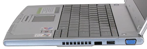 Как мы видим, Samsunq Q20 действительно тоньше (на 1 мм) и легче (на 50 г), чем ASUS S5200N с «обычным» процессором Intel Pentium M, но тяжелее (на 20 г), чем ASUS S5200NE с процессором Pentium M ULV. Справедливости ради надо отметить, что Samsung Q20 был выпущен существенно раньше. Набор интерфейсных портов, в общем-то, стандартен для ноутбуков на платформе Centrino с учетом их габаритов.
