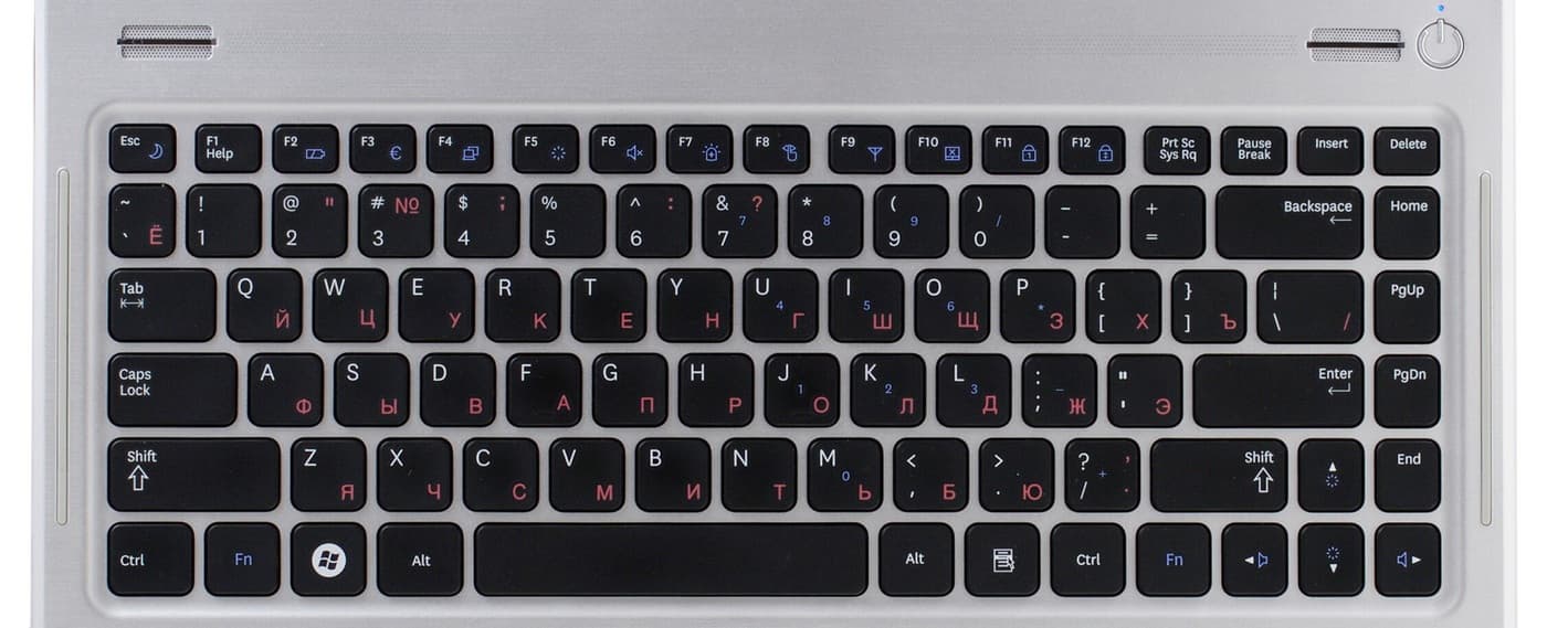 В Samsung Q330 применена модная клавиатура с отдельно расположенными клавишами. Клавиши черные, контрастируют с серебром клавиатурной панели (которая тут единая на весь корпус). Сама клавиша квадратная, верхняя поверхность слегка вогнутая, палец на нее ложится очень хорошо. Поверхность клавиш, видимо, не очень устойчива к истиранию — после полутора недель интенсивной работы с ноутбуком часто используемые клавиши уже стали немного лосниться. Шрифты видно на фотографии, они чуть мелковаты, русские буквы выполнены не очень контрастными. Это стоит учесть пользователям, работающим при слабом освещении, и людям старшего возраста. У меня проблем с читаемостью букв не возникло.