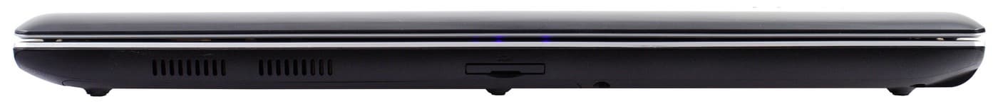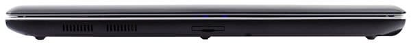 На передней грани портов нет, только картовод. Что портов нет — это хорошо, а картовод спереди совсем не мешает. В картовод вставлена заглушка, если работать с карточками активно, ее можно забыть вставить и потерять.