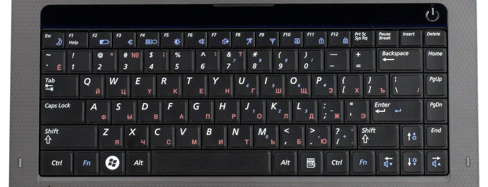 Дополнительных клавиш на корпусе нет, поэтому все типичные функции, вроде регулировки громкости, переключения на внешний монитор, усыпления компьютера, отключения беспроводного адаптера и тачпада и т.п., закреплены за верхним рядом функциональных клавиш и доступны при одновременном нажатии с клавишей Fn.