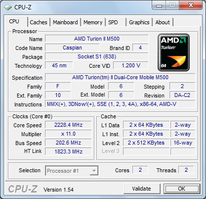 | Процессор | AMD Turon II M500 (2,2 ГГц, кэш второго уровня 2x512 МБ, шина HT 1800 МГц) | |