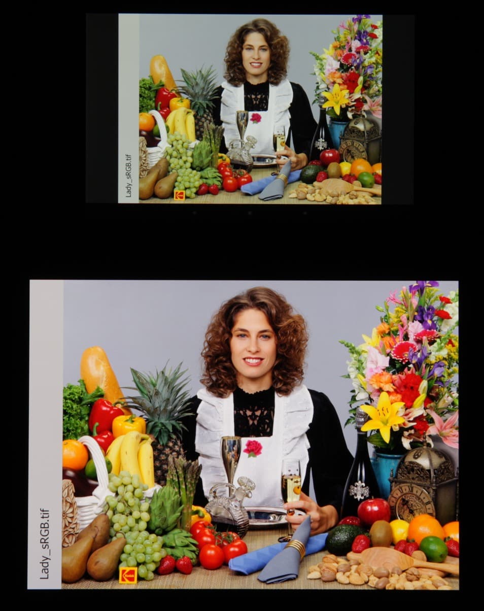 Отметим отличную равномерность яркости и цветового тона белого поля. И тестовая картинка (в режиме Основной):