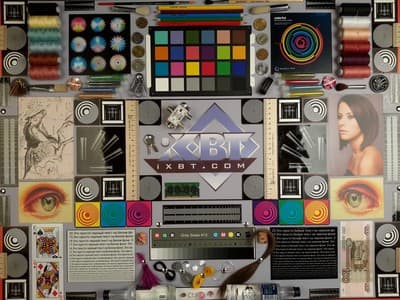 Яркость под углом у обоих экранов заметно уменьшилась (чтобы избежать сильного затемнения, выдержка увеличена примерно в 2,7 раза в сравнении с предыдущими двумя фотографиями), но в случае Samsung падение яркости выражено гораздо меньше. В итоге при формально одинаковой яркости экран Galaxy Tab S 10.5 визуально выглядит гораздо более ярким (в сравнении с ЖК-экранами), так как на экран мобильного устройства часто приходится смотреть под небольшим углом. И тестовая картинка: