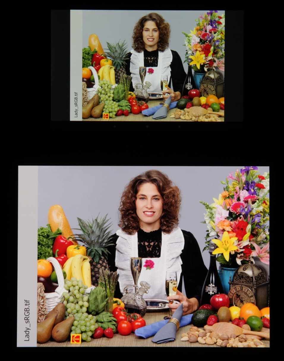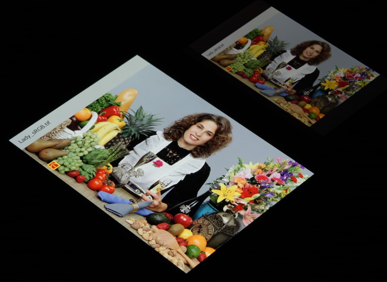 Отметим, что на экранах с широким цветовым охватом без соответствующей коррекции цвета обычных изображений, оптимизированных для устройств sRGB, выглядят неестественно насыщенными. Это можно видеть на фотографии ниже (профиль Фото AMOLED):