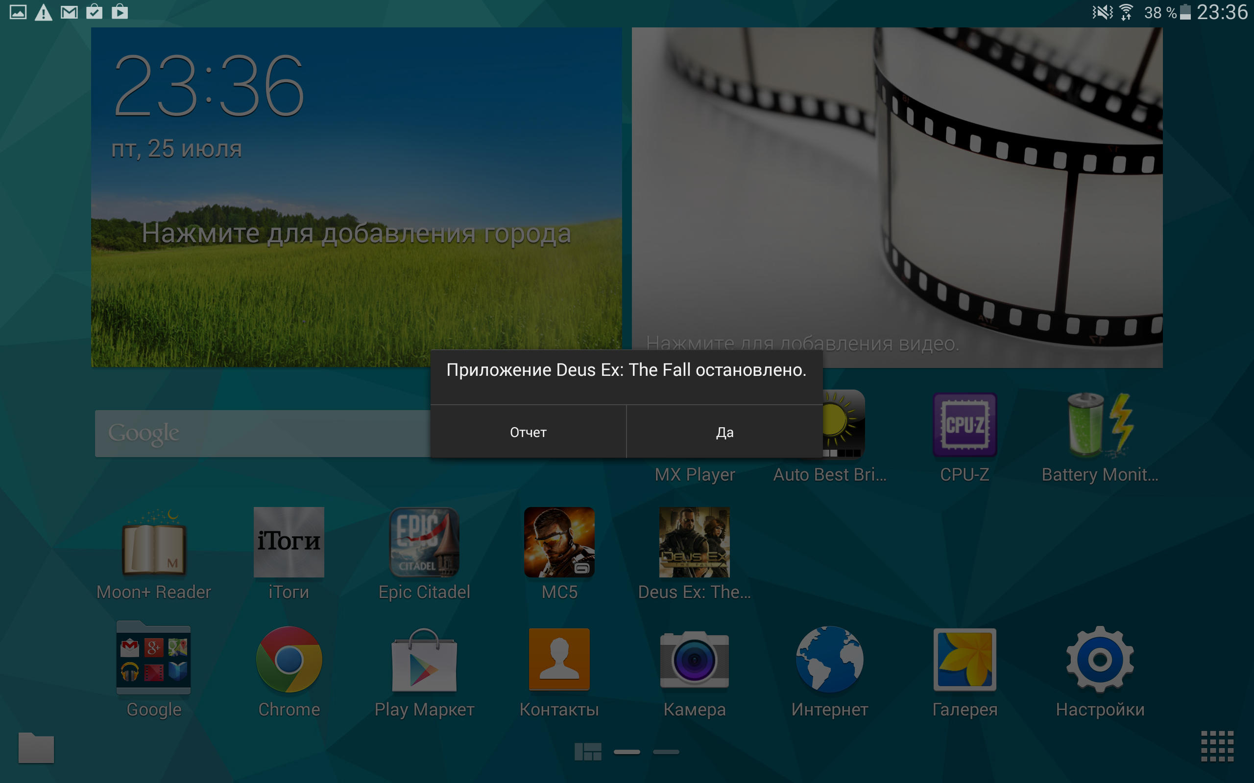 Таким образом, мы видим, что если в процессорных бенчмарках планшет показывает себя очень неплохо, то в GPU-тестах зачастую его ждет поражение. Тем не менее, производительности графического ускорителя вполне достаточно для запуска популярных 3D-игр, поэтому мы проверили совместимость с нашим традиционным тестовым наборот — правда, немного обновленным. Modern Combat 4: Zero Hour заменена только что вышедшей Modern Combat 5: Blackout (читайте обзор игры в июльском номере журнала iТоги!), а еще добавлена игра Deus Ex: The Fall.