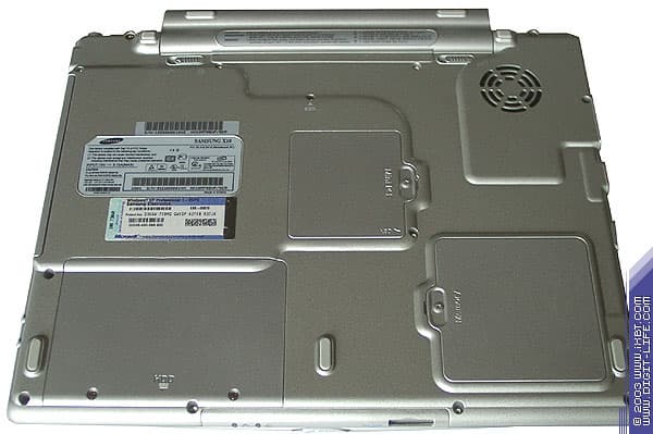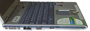 Стоит отметить, что Samsung отказался от обычной практики «совмещенного» выхода S/PDIF. На мой взгляд, это правильное решение. Выход на наушники должен, по идее, располагаться в легкодоступном месте, ближе к передней части компьютера. Для оптического же выхода самое место на заднем торце. Справа от аккумуляторной батареи разъем для замка Кенсингтона.