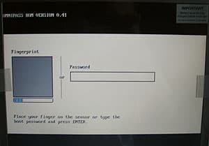 Системе достаточно или того, или другого, так что если вы поранили палец, запустить компьютер вам удастся. Пароль вводится после сканирования отпечатков пальцев и не обязан совпадать с паролем входа в операционную систему. Особо активных попыток взлома я не предпринимал, но могу сказать, что система функционирует независимо от BIOS и не позволяет грузиться с какого-либо носителя без идентификации личности. Ошибки идентификации случаются, но больше двух попыток для загрузки не требовалось. В общем, на первый взгляд система достаточно удачная.