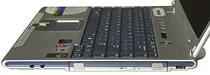 Тем более, что при работе палец то и дело «по привычке» пытается нажать на клавишу скроллинга. В остальном тачпэд удобный. Клавиатура достаточно стандартная. Только в блок клавиш управления курсором включены клавиша вызова меню и клавиша «Fn». Честно говоря, мне больше нравится, когда эти места оставляют незадействованными меньше вероятность промахнуться. Из оригинальных решений отмечу возможность вызова на экран информации об электропитании (при нажатии «Fn+F2» в левом верхнем углу на некоторое время загорается символ питания от сети или от батарей, затем уровень зарядки батарей в процентах) и включения/отключения с клавиатуры оптического выхода.