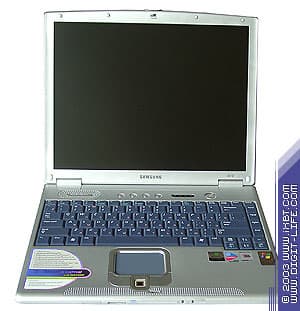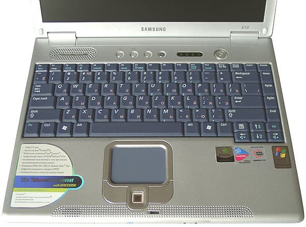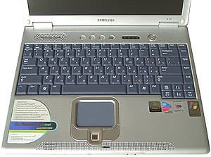 Итак, первое, что бросается в глаза необычная графика. До сих пор побывавшие в моих руках ноутбуки на платформе Centrino оснащались либо встроенной графикой, либо графическим контроллером ATI M9. А Samsung выбрал NVIDIA. Что же посмотрим. Устройства безопасности, основанные на сканировании отпечатка пальца, уже не являются экзотикой (я, например, писал о подобном в обзоре ASUS) оно, на мой взгляд, является оптимальным способом защиты информации в ноутбуке (не беря в расчет стойкость к взлому и вероятности ошибок) палец забыть сложно :).