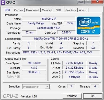 | Процессор | Intel Core i7-2640M (2,8 ГГц, разгон до 3,5 ГГц) | |