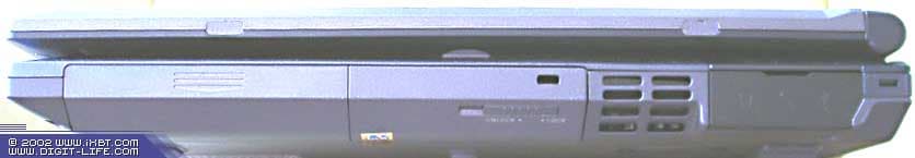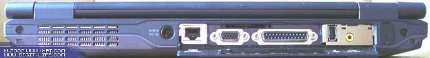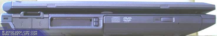 Теперь немного о недостатках. Кнопка извлечения трея DVD/CD-RW драйва утоплена (справедливо защита от случайного нажатия), а вот расположенный рядом индикатор активности выступает, поэтому при работе "вслепую" я регулярно пытался нажать именно на него. Впрочем, к этому можно привыкнуть. А вот что мне непонятно так это отсутствие инфракрасного порта, тем более, что беспроводная сеть предлагается только как опция в виде карты расширения PC card. Мелочь, но иногда полезно иметь средство беспроводной связи с телефоном или принтером.