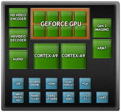 Рынок систем на чипе для мобильных устройств и до прихода туда NVIDIA развивался семимильными шагами, но калифорнийская компания своими решительными действиями заставила расшевелиться такие компании, как Qualcomm, Texas Instruments и Samsung. Каждая из компаний, выпускающих системы на чипе, имеет несколько отличающуюся стратегию проектирования и выхода на рынок. Некоторые компании стараются использовать архитектуру ARM в её неизменном виде, строя свои SoC на основе стандартных ARM-ядер. Компании Qualcomm и NVIDIA осуществляют модификации в вычислительных ядрах, делая упор на различные способности своих систем. Так, у решений Qualcomm выше степень интеграции, а NVIDIA Tegra 2 стала не только первым двухъядерным SoC-чипом на основе пары ядер Cortex-A9, но и удивила своим мощным графическим ядром и продвинутой системой контроля потребления энергии.