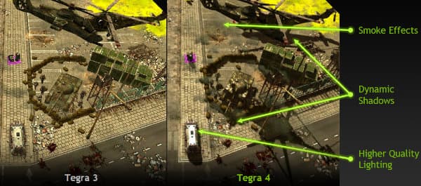 Интересно, что такая сравнительная близость Tegra 4 и Tegra 4i по характеристикам позволяет создавать игры для TegraZone одновременно для обеих моделей SoC, причем младшая не сильно уступит старшей во многих графических задачах. Впрочем, вопросы графической производительности весьма сложны, и мы пока готовы обсуждать их лишь с точки зрения самой NVIDIA. Причем пока что обнародованы данные лишь по старшему решению. В любом случае, такие шаги NVIDIA позволят дополнительно улучшить графику мобильных игр, добавив столь недостающие эффекты, знакомые нам по «большим» играм.