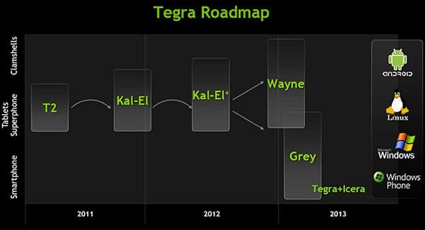 Компания явно не собиралась останавливаться на достигнутом, и еще в 2011 году на Mobile World Congress NVIDIA объявила, что новые Tegra будут выпускаться каждый год — следующей как раз должна была стать система под кодовым именем Kal-El. Еще через год планировалось решение под кодовым именем Wayne, затем — Logan, и в 2014-м — Stark (все кодовые имена — имена супергероев из комиксов).