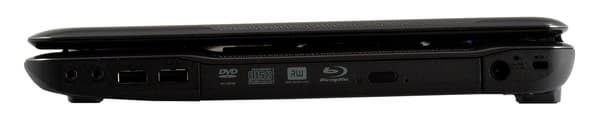 В А660 есть, пожалуй, все необходимые для домашнего ноутбука порты. Более того, они удобно сгруппированы: те разъемы, которые используются относительно часто, расположены на правой стороне корпуса (включая и оптический привод) и с ними удобно работать правой рукой, а те, к которым подключаются нечасто — расположены слева. Мне такое расположение портов кажется близким к оптимальному. Возможно, трех портов USB может не хватать некоторым пользователям, но большинству их должно быть достаточно.