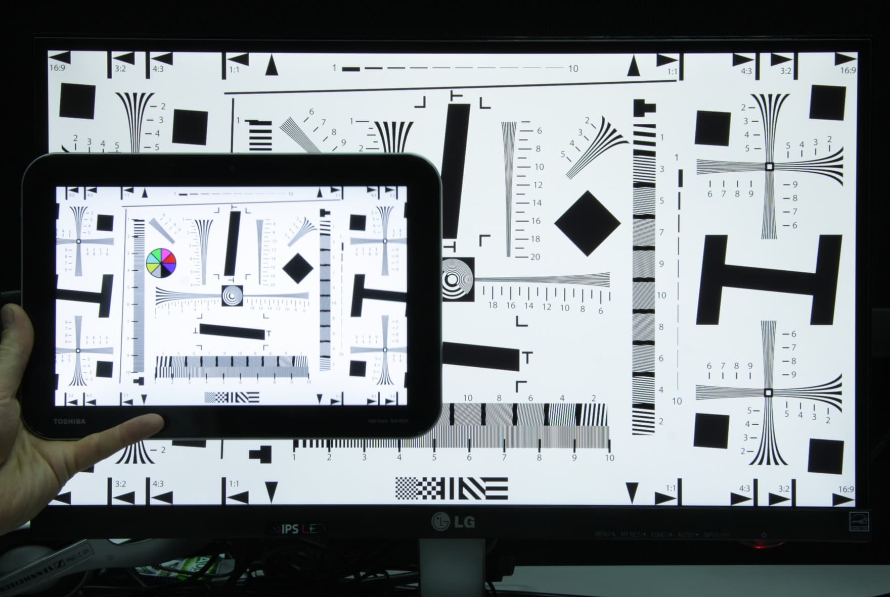 При этом картинка видеофайла на экране планшета вписана по высоте и немного обрезана по бокам. Отображаемый на мониторе диапазон яркости соответствует стандартному видеодиапазону (16—235): в тенях и в светах отображаются все градации оттенков. Результаты тестов вывода на монитор приведены в таблице выше в блоке «HDMI (монитор)».