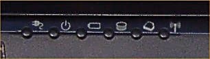 Колонок тут нет… поскольку они расположены над клавиатурой и смотрят вверх. Зато есть целых шесть индикаторов (разнесены индикаторы активности жесткого диска и устройства в сменном отсеке и целых два индикатора отданы под активность батарейки (заряд, работа).