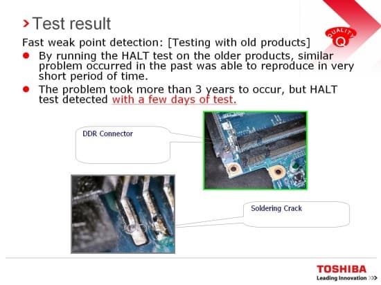 По данным компании, в реальности проблема с пайкой выявилась после трех лет использования, однако в условиях ускоренного теста ее смогли воспроизвести в течение нескольких дней