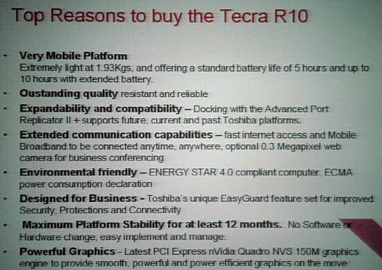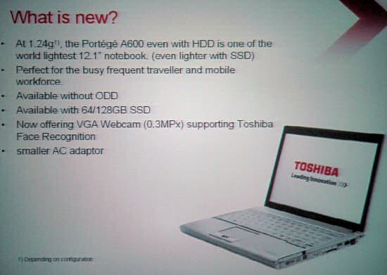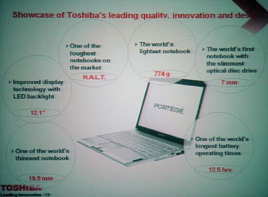 Дальше были представлены новые модели Portege R600 и Tecra R10. Самый инновационный и технологичный продукт разумеется, R600, с него и началась презентация