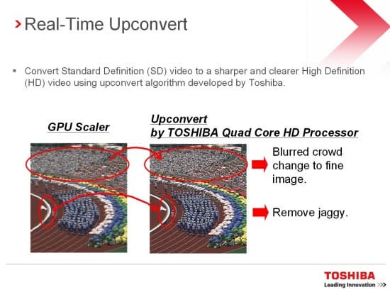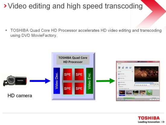 Помимо совершенствования структуры бизнеса, Toshiba не прекращает и деятельность по разработке и внедрению новых продуктов. Основным технологическим нововведением компания считает мультимедийный процессор Toshiba HD QuadCore и технологии, реализованные на его основе.