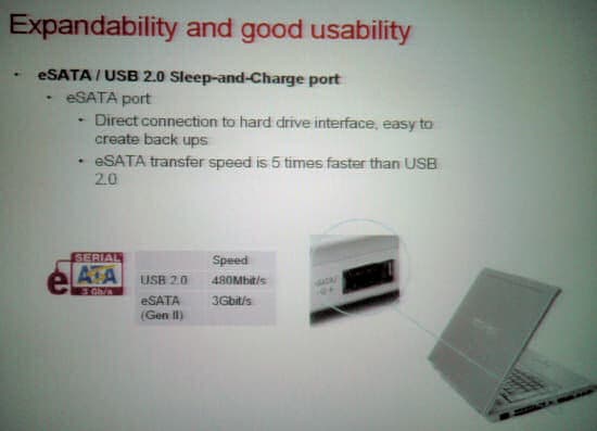 Отдельно производитель выделяет технологии, связанные с расширяемостью: eSATA для связи с внешними устройствами хранения данных, а также уже упоминавшаяся технология USB Sleep-and-Charge